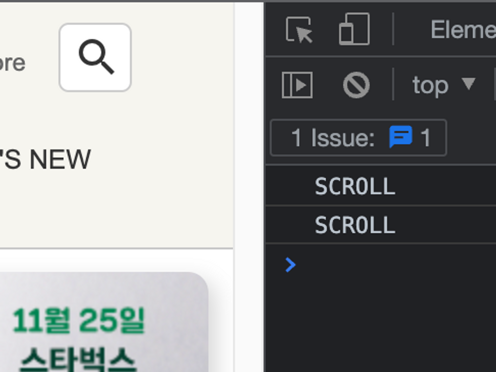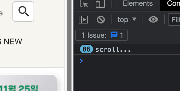 window에 scroll 이벤트를 추가하는 방식은 이처럼 함수를 너무 많이 호출하기에 웹 페이지가 무거워지면 성능 저하가 일어날 수 있다.
