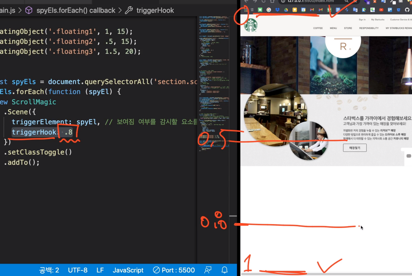 현재 스크롤 위치를 계산하는 라이브러리, 강의에서 나온 2.0.8 버전을 사용했다.