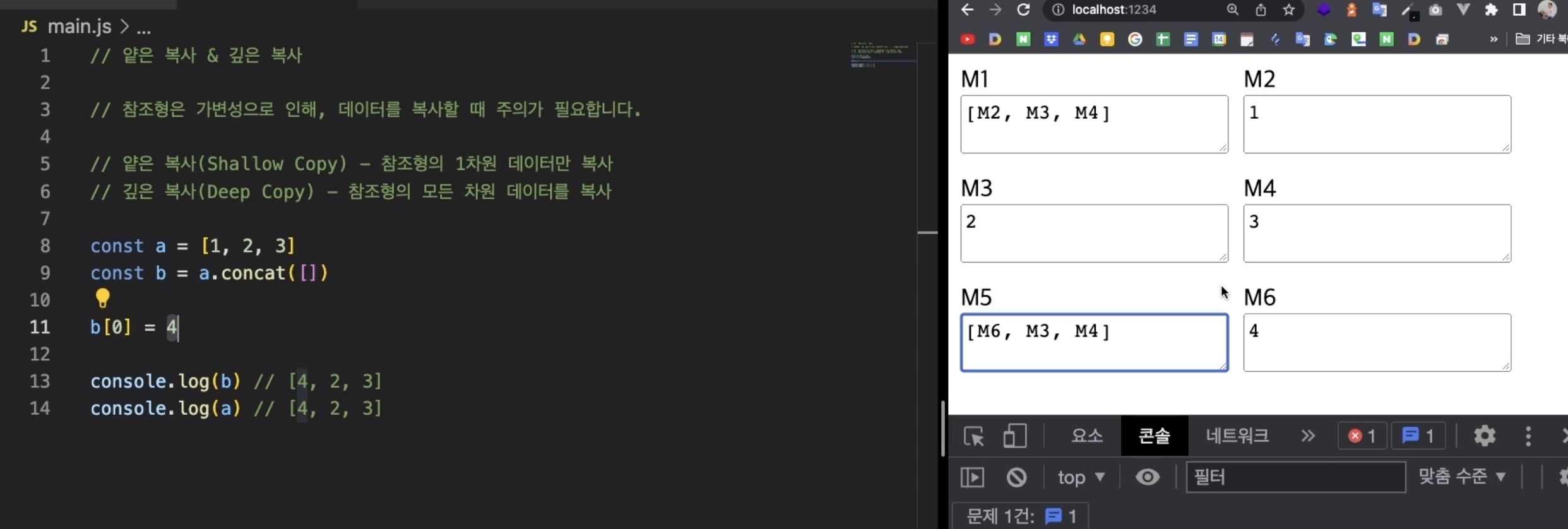 그렇기 때문에 깊은 복사를 하여 완전히 데이터를 분리해주어야한다.
